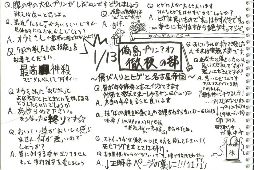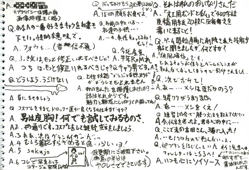 日中のスケブ同様のQ&A形式を継承しつつも、一切会話を成立させる気の無い内容です。